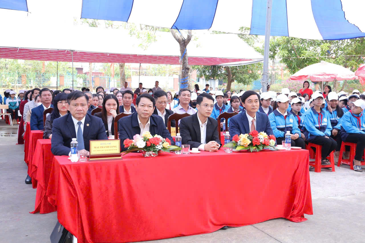 Tiếp theo chương trình Ông Mai Thanh Long – Tỉnh ủy viên, Phó Chủ tịch HĐND tỉnh lên phát biểu, gửi tới toàn thể cán bộ, giáo viên, nhân viên nhà trường những lời chúc mừng tốt đẹp nhất. Ông đánh giá cao và biểu dương những thành tích ấn tượng của thầy và trò nhà trường, đó là: