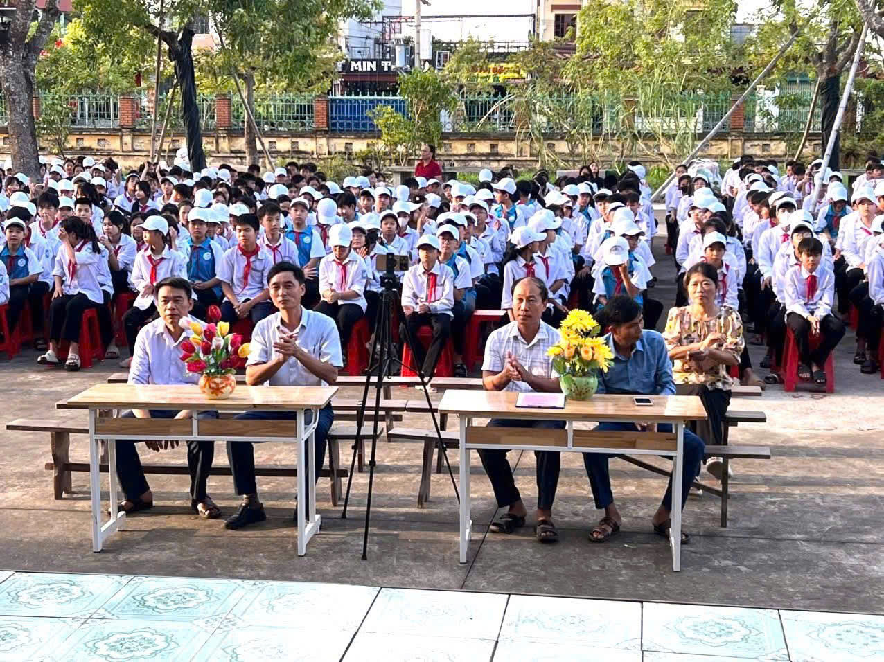 Buổi lễ vinh dự được chào đón sự hiện diện của thầy Nguyễn Văn Minh – Bí thư Chi bộ, Hiệu trưởng nhà trường, cùng toàn thể các thầy cô giáo, cán bộ nhân viên và các em học sinh toàn trường.