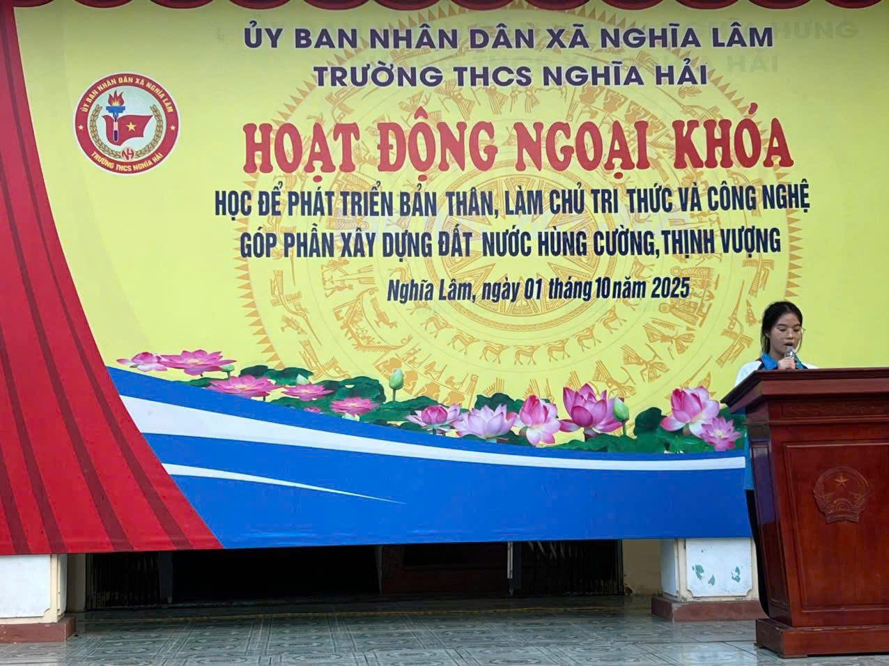Thực hiện Kế hoạch số 82/KH-UBND của Ủy ban nhân dân tỉnh Ninh Bình về việc tổ chức Tuần lễ hưởng ứng học tập suốt đời năm 2025, chiều ngày 01/10/2025, Trường THCS Nghĩa Hải đã long trọng tổ chức Lễ phát động với chủ đề “Học để phát triển bản thân, làm chủ tri thức và công nghệ, góp phần xây dựng đất nước hùng cường, thịnh vượng”.